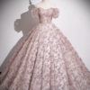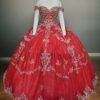This off shoulder sequin ball gown is designed to stand out while maintaining a traditional quinceanera silhouette. The fitted bodice features sequin accents layered with lace appliques for added depth. The off shoulder neckline highlights the upper body while providing structure. A full skirt creates a dramatic and formal shape suitable for ceremonial moments. The fabric offers a soft yet supportive feel, ensuring comfort throughout the event. This gown is ideal for quinceanera celebrations that blend sparkle with classic ball gown elegance.